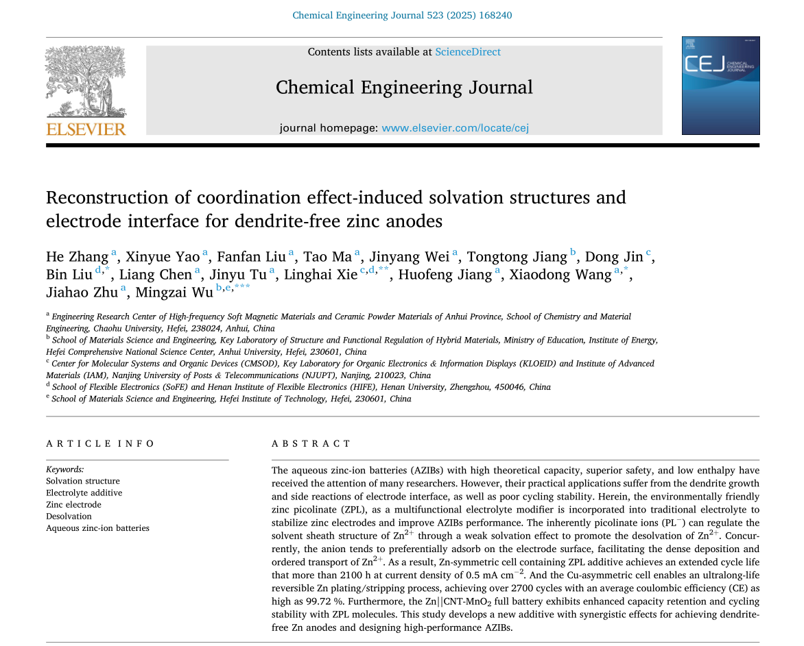 巢湖學院化學與材料工程學院新能源材料與器件科研創新團隊張賀博士在國際權威...